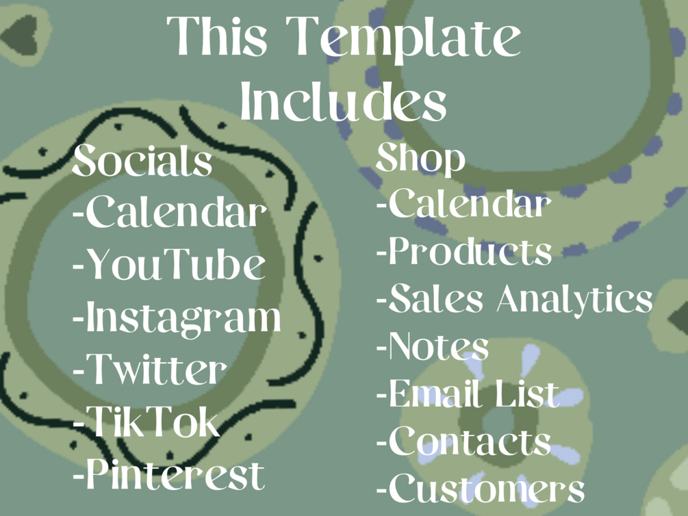 Being a content creator/small business owner requires dynamic skill sets. Time management, organizational skills and artistic talent are necessary tools of the trade. Sunshine Sols’ Content Creator/Small Business Template can simplify your workload dynamics into organized tasks that are easy to manage, schedule and track for optimum productivity. Brainstorm, plan, schedule posts, track progress and revenue, and keep track of contacts and clients in one simple, easy to use place that can be fully customized to meet your every need.