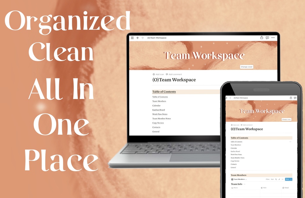 Your time is valuable and our Team Workspace Templates are made to streamline your productivity and final output by effective use of simple, clean, straightforward communication with built in accountability boards. No more asking if something has been executed or where it might be in terms of progress, it is all accounted for in the template. Calendar, Contacts, Socials, Workflow, Copy Review, Roadmaps & Collaboration all in one place, and fully capable of customization for your convenience.